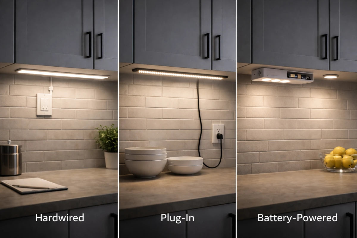 How your under cabinet lighting is powered determines installation complexity and available control options.