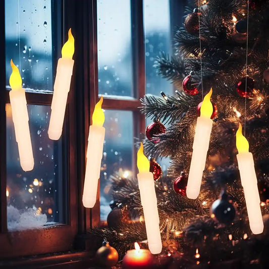 12/24pcs Flameless Floating Candles With Wand Halloween Decoration Hanging Candles