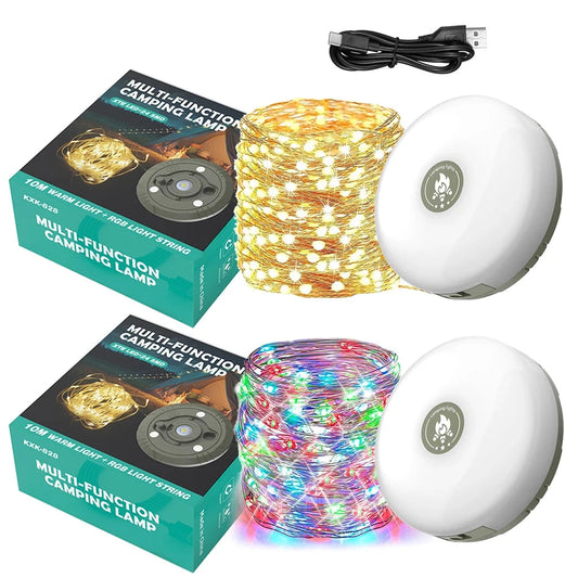 USB Rechargeable Camping Light 10meter Outdoor Tent String Light RGB Atmosphere Light with Magnet Hook