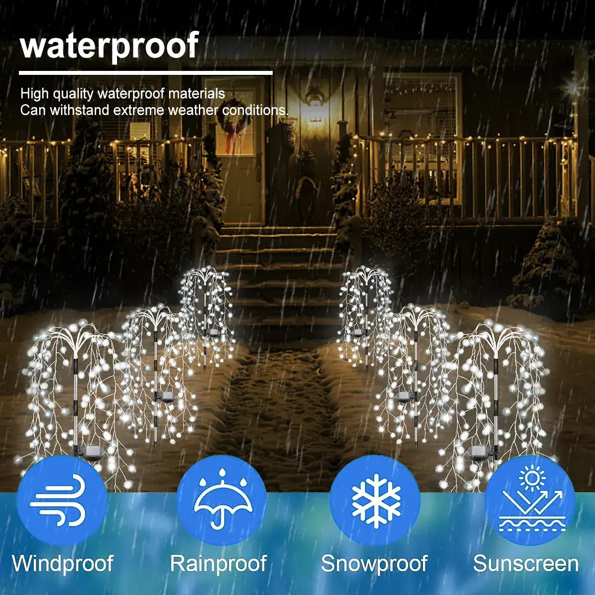 1) Solarbetriebene Feuerwerkskörper in Weidenform mit hochwertigen LEDs, hoher Helligkeit und gutem Lichteffekt. Solaraufladung, wasserdicht, 8 Leuchtmodi.