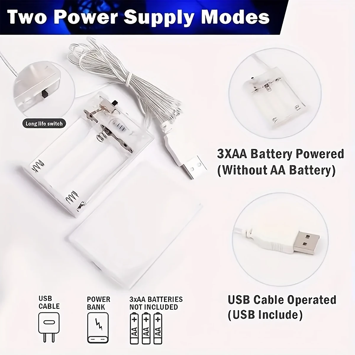Schalten Sie es mit 3 AA-Batterien (nicht im Lieferumfang enthalten) oder einem USB-Adapter ein. Das Neonschild kann an eine mobile Powerbank oder einen Computer angeschlossen werden. Sie können die Stromversorgungsmethode nach Ihren Bedürfnissen wählen.