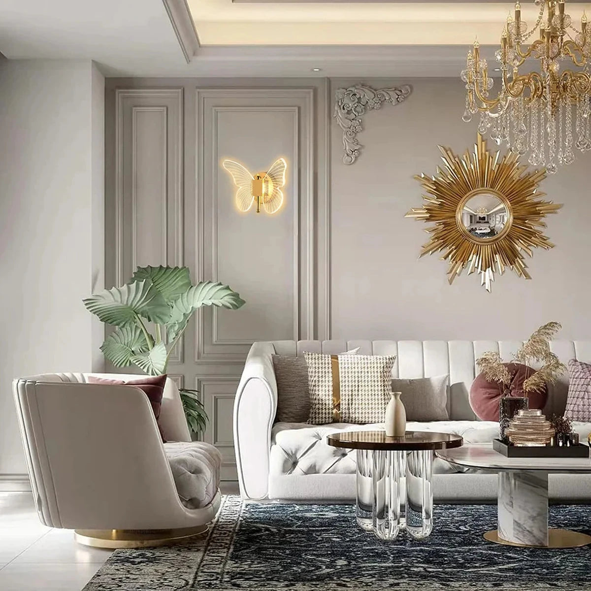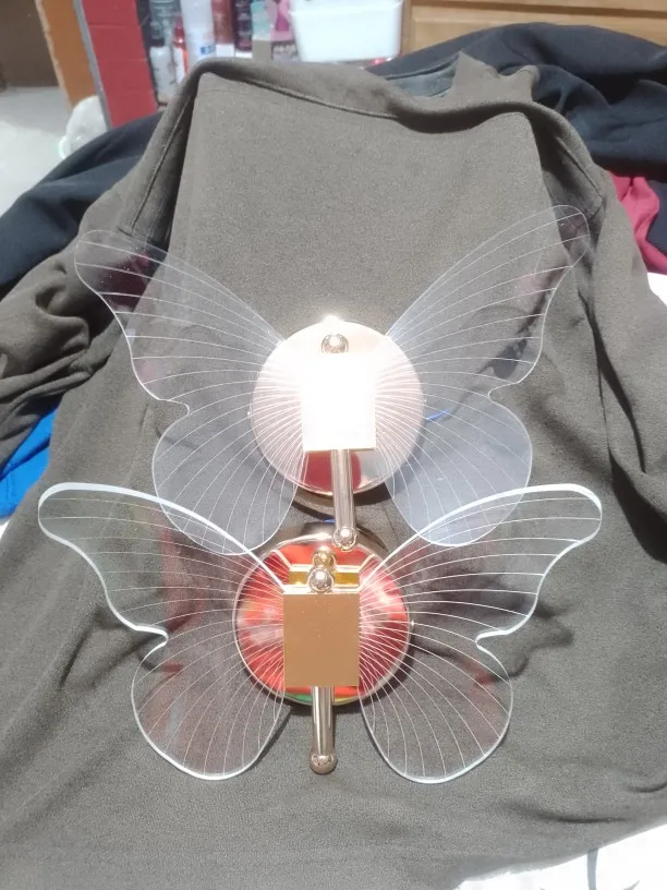 Moderne LED-Wandleuchte in Schmetterlingsform aus Metall und Acryl mit sanftem, gleichmäßigem Licht und dreifarbigen, einstellbaren Modi. Dekorative Wandleuchte, ideal für Schlafzimmer, Wohnräume und Cafés.