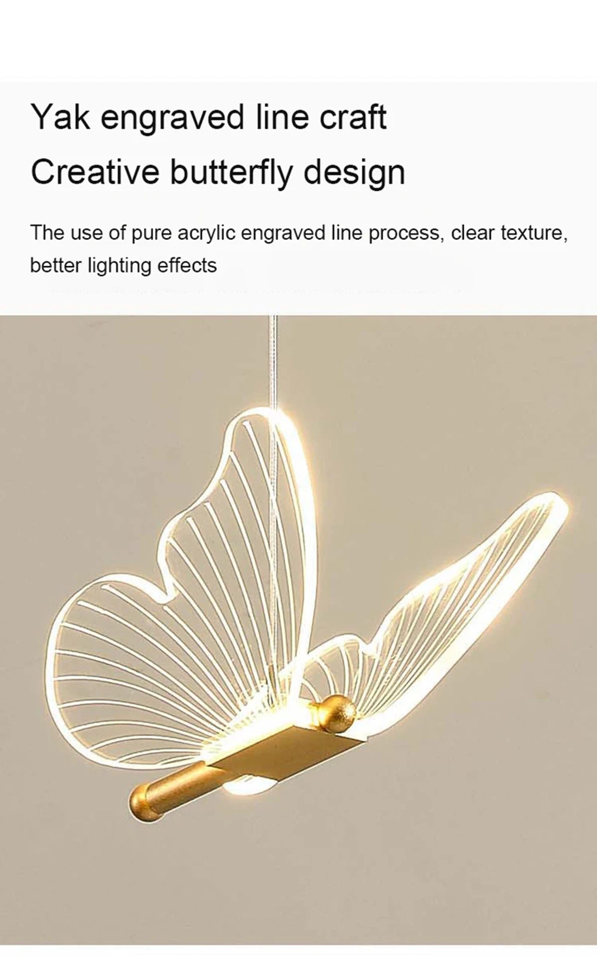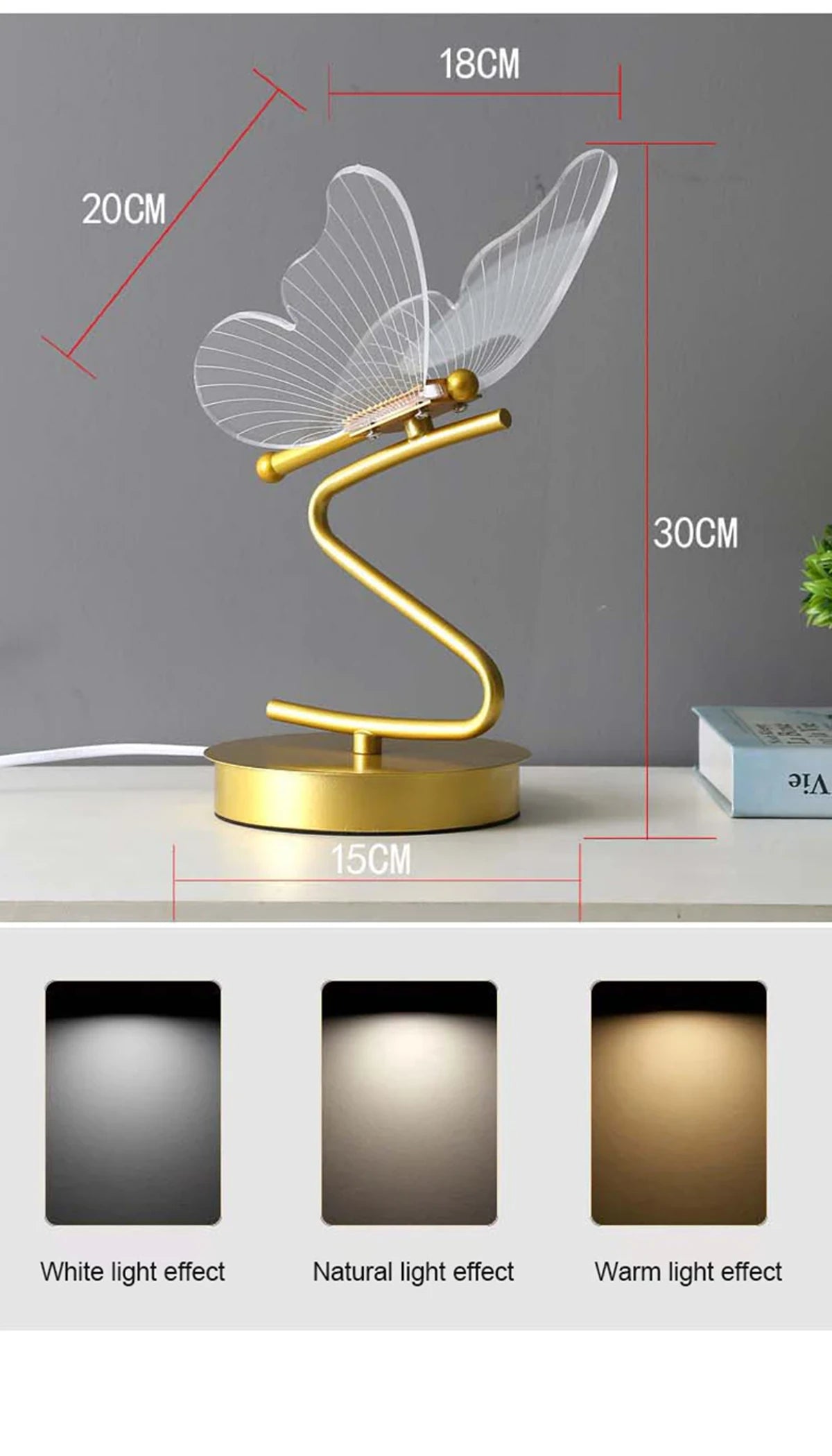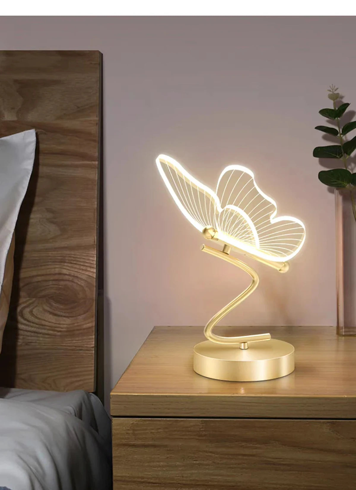 - Einzigartiges Schmetterlingsdesign: Diese Lampe besticht durch ihr atemberaubendes Schmetterlingsdesign mit einem transparenten Korpus, der im eingeschalteten Zustand leuchtet und so einen faszinierenden Effekt erzeugt. Der goldene Sockel und Stiel erinnern an einen Ast und erwecken den Eindruck eines darauf sitzenden Schmetterlings – eine verspielte und elegante Note für jeden Raum.