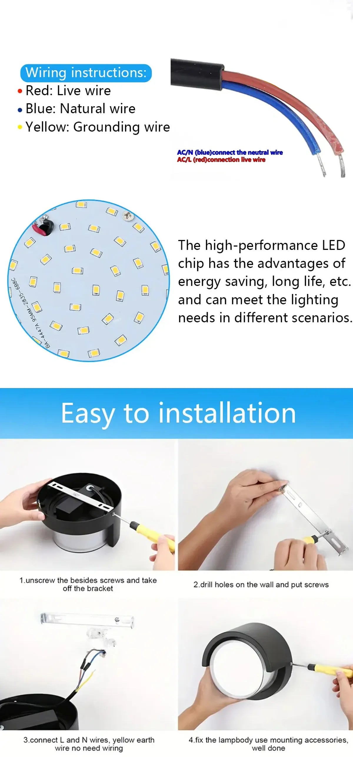 Unterstützt AC85-265V und bietet eine einfache, halbversenkte Wandmontage, die für verschiedene private und gewerbliche Umgebungen geeignet ist.