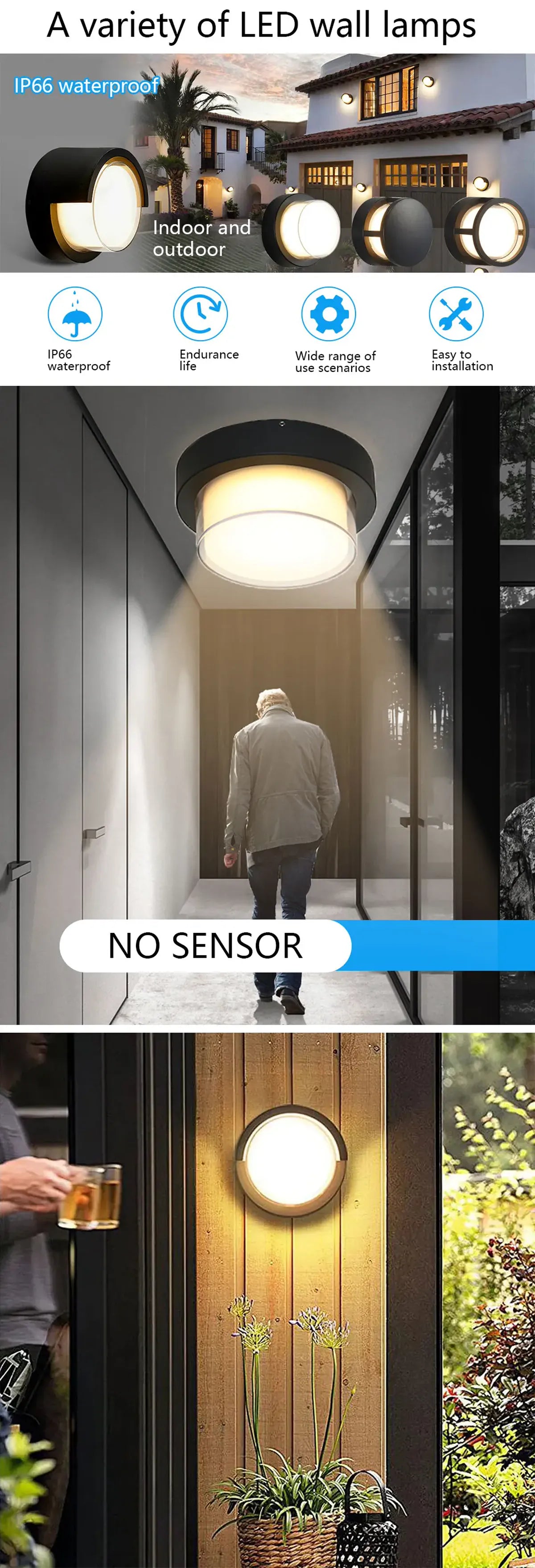 Bietet leistungsstarke, helle Beleuchtung, die sich für Haustüren, Wege, Gärten, Zäune und andere Innen- und Außenbereiche eignet.