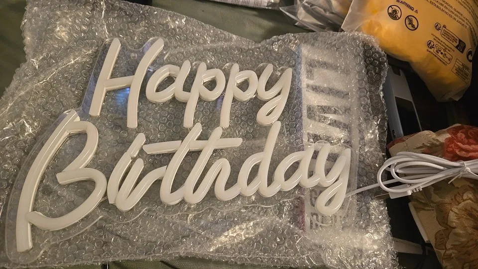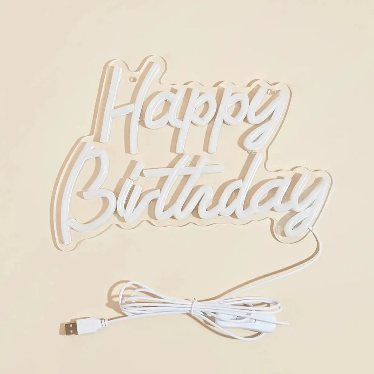 - Festliches Design: Das Neon-Schild „Happy Birthday“ sorgt für eine fröhliche und festliche Atmosphäre bei Geburtstagsfeiern.