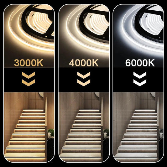 Bande LED COB haute densité 12 V - Câble 2 broches, indice de protection IP30 ou IP68, 320 LED/m