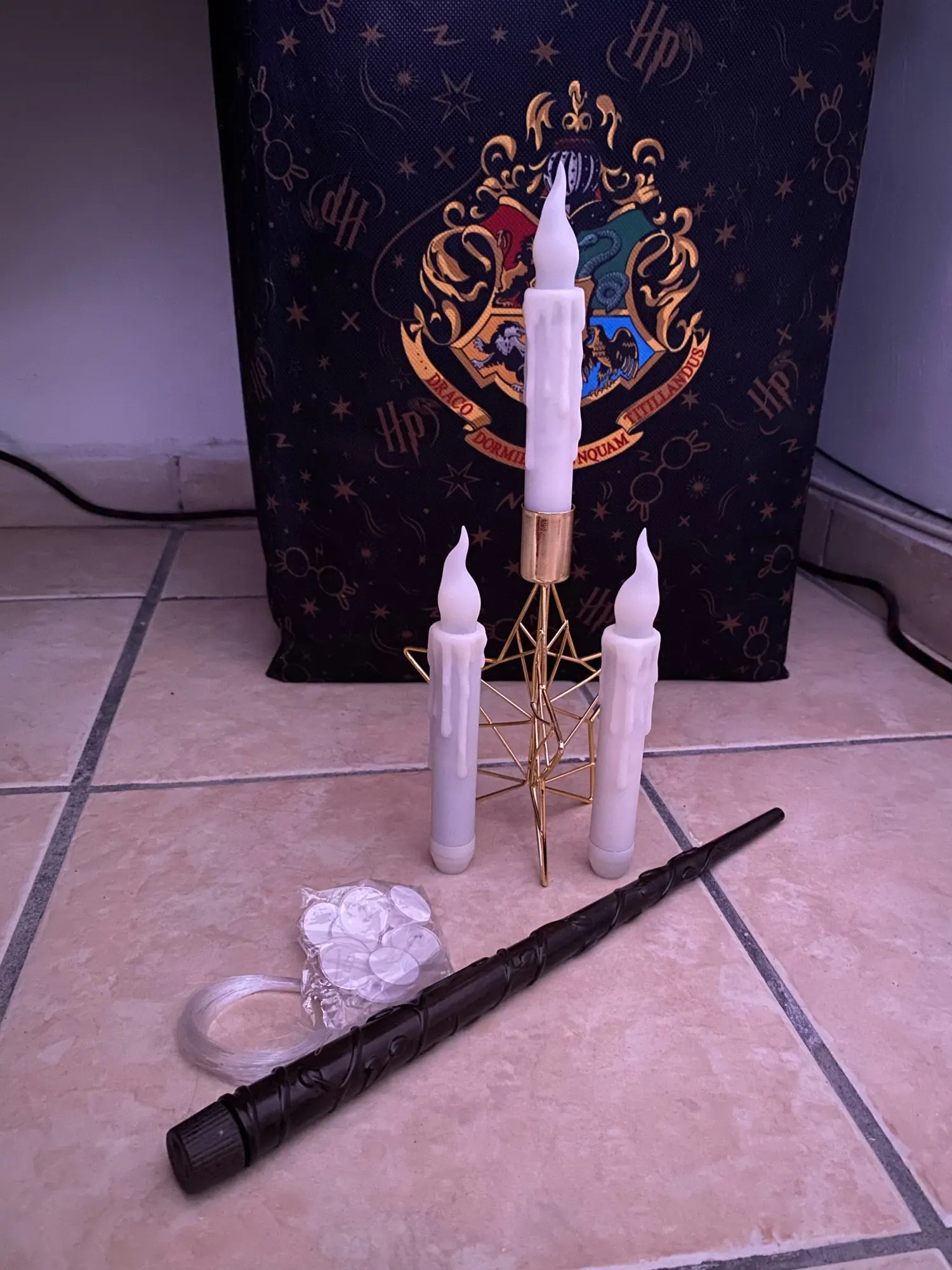 Piles : Bougie : 2 piles AA / Baguette magique : 1 pile AAA