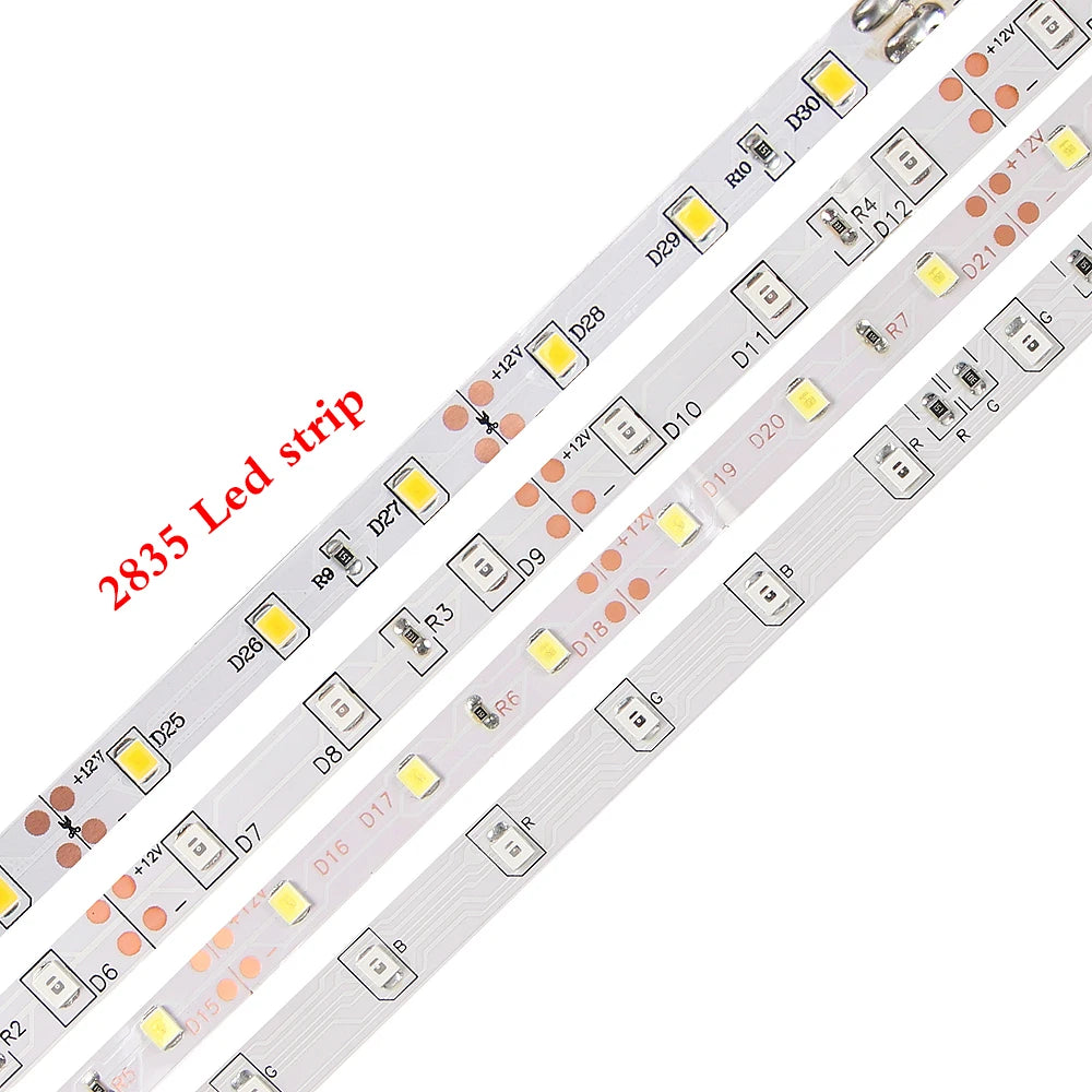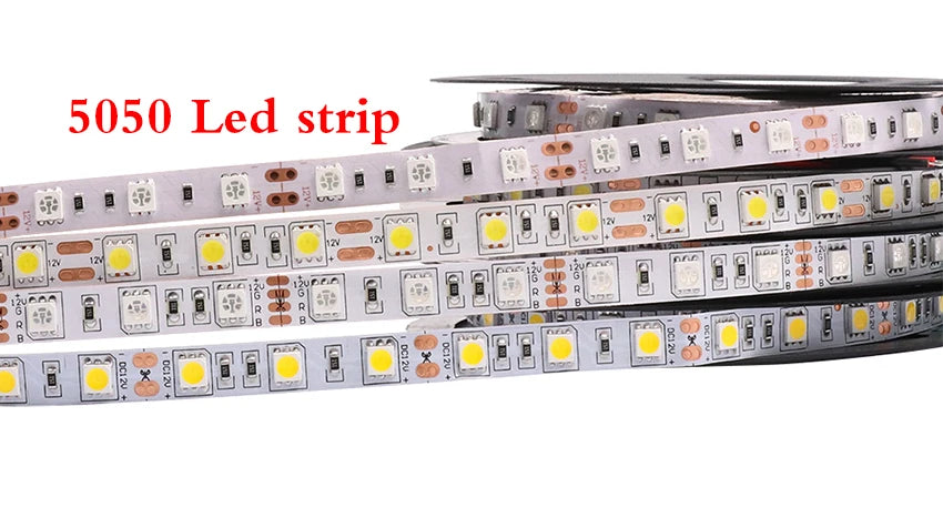 Bandeaux LED RGB SMD 2835/5050/5630 12 V, composés de 60 LED par mètre, offrant une palette de couleurs variée et des températures de couleur de 2 800 à 7 500 K. Disponibles en versions IP21 (non étanche) ou IP65 (étanche) pour des applications d'éclairage décoratif flexibles.