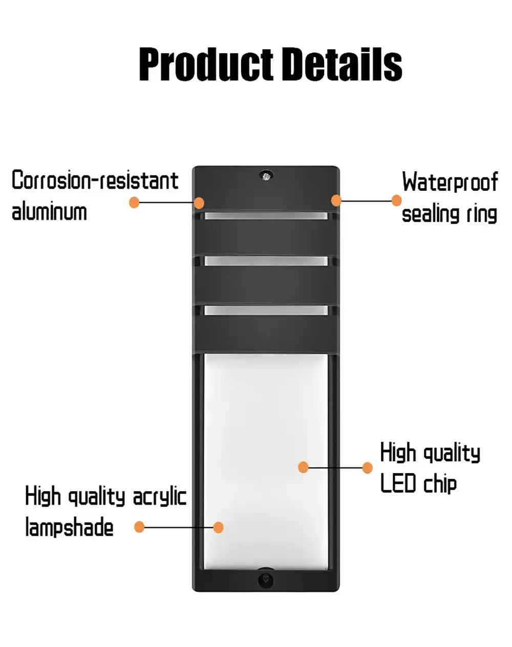 Qualité supérieure et dissipation de la chaleur : Fabriquée en aluminium moulé sous pression de haute qualité, cette applique murale extérieure offre une excellente dissipation de la chaleur, garantissant une fiabilité à long terme et empêchant la dégradation de la lumière au fil du temps.
