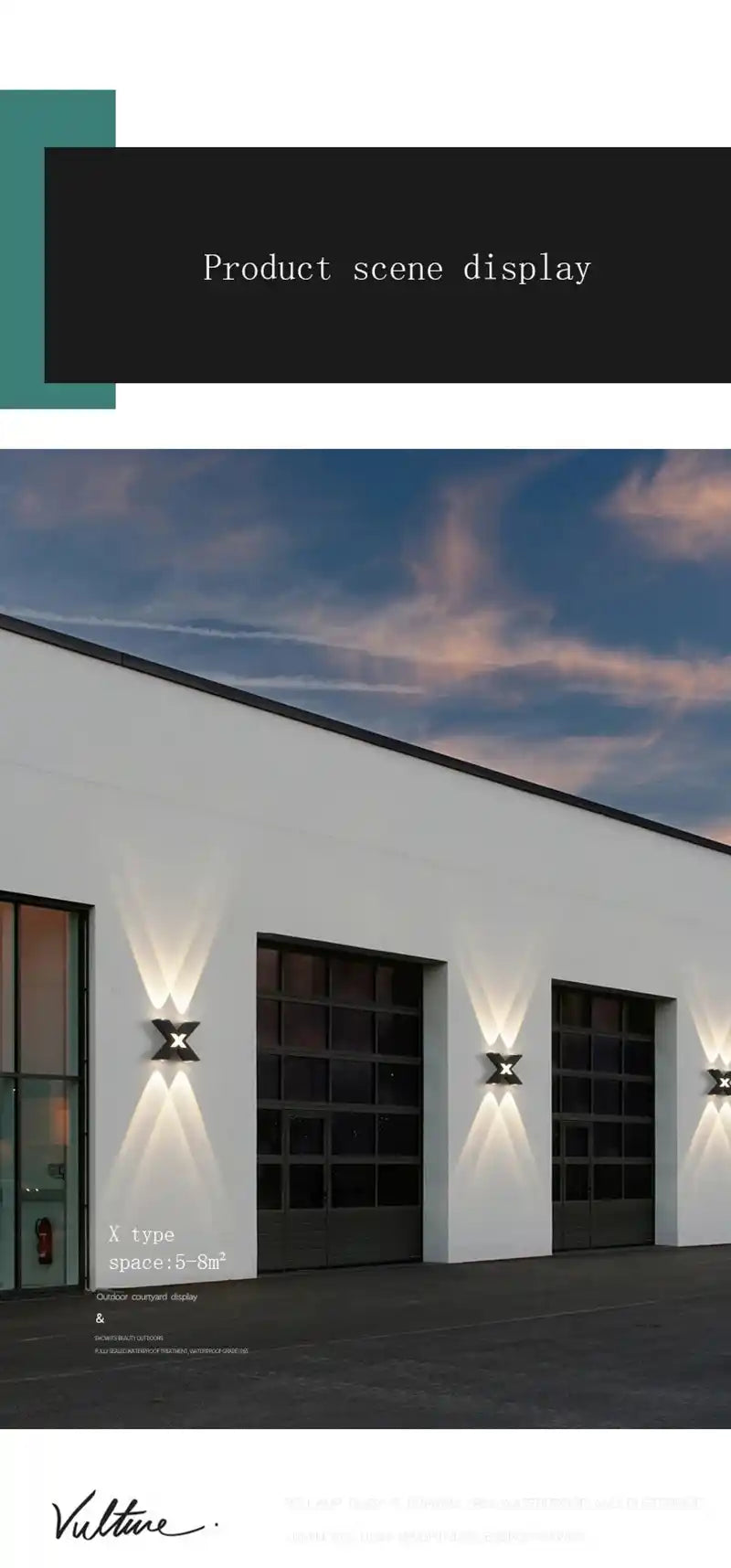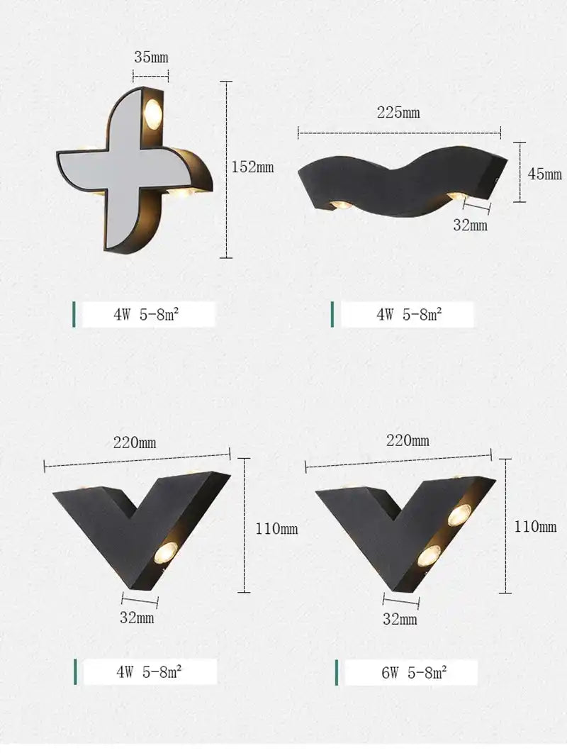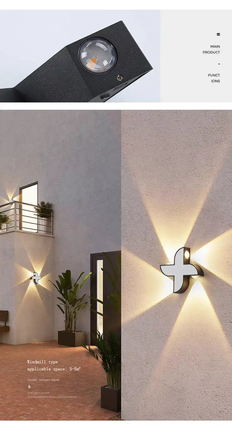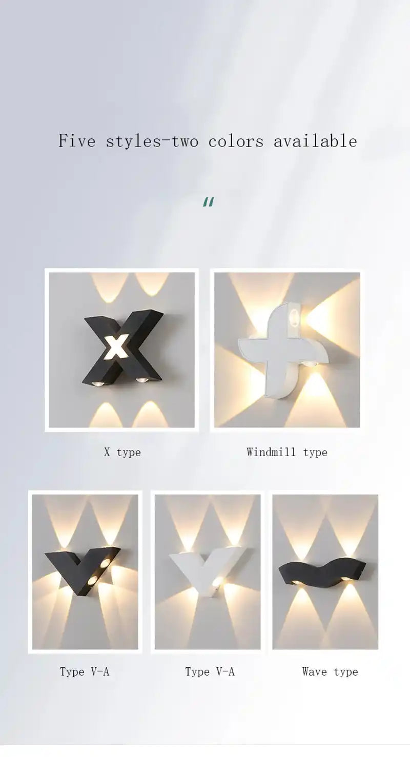 Design unique en forme de symbole : Disponibles en formes distinctives de vague, de V, de X et de moulin à vent, ces appliques murales extérieures LED modernes ajoutent une touche créative et élégante à toute cour, véranda ou villa.