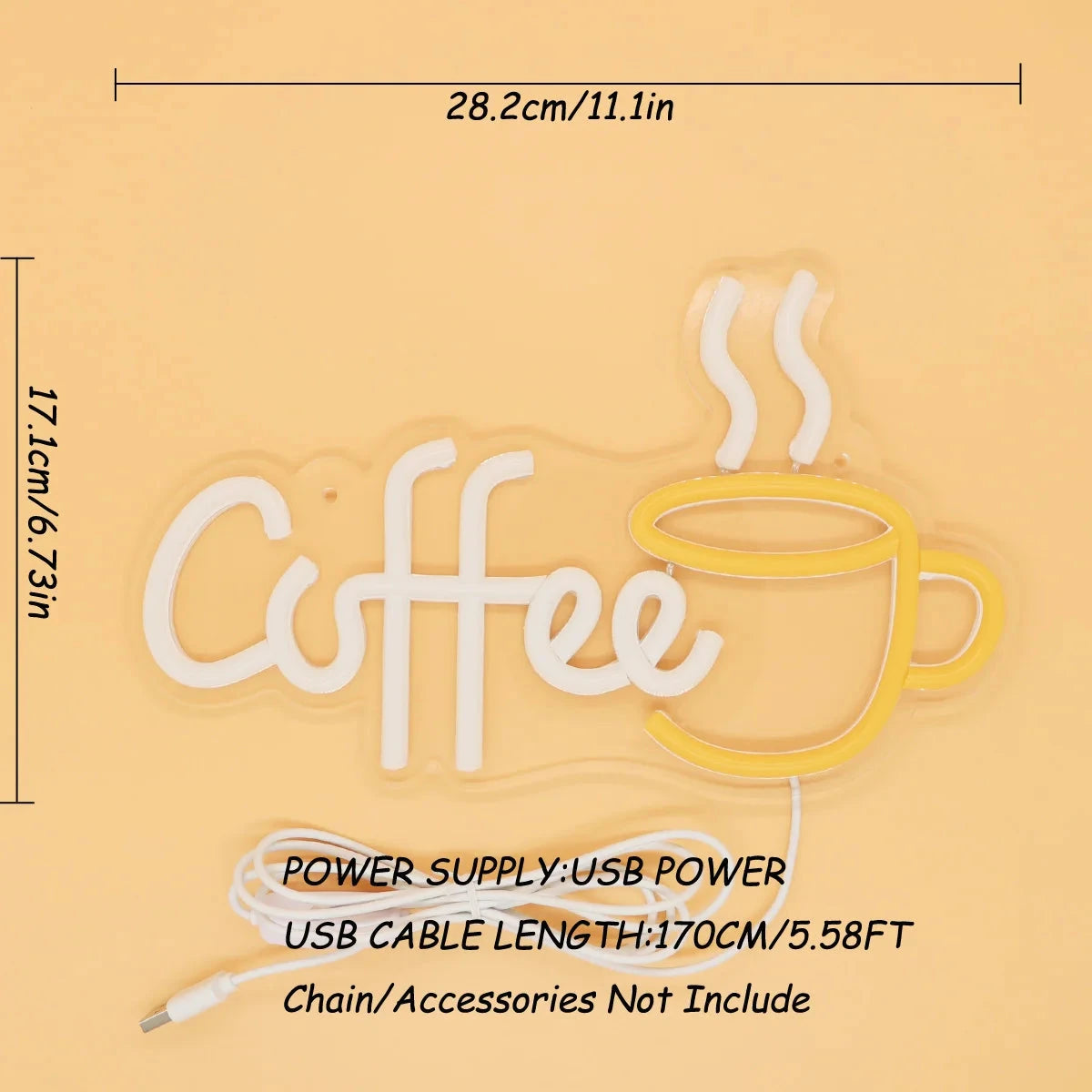- Eye-Catching Design: The "Coffee with Cup" neon word sign provides a vibrant and stylish way to add personality to any space.