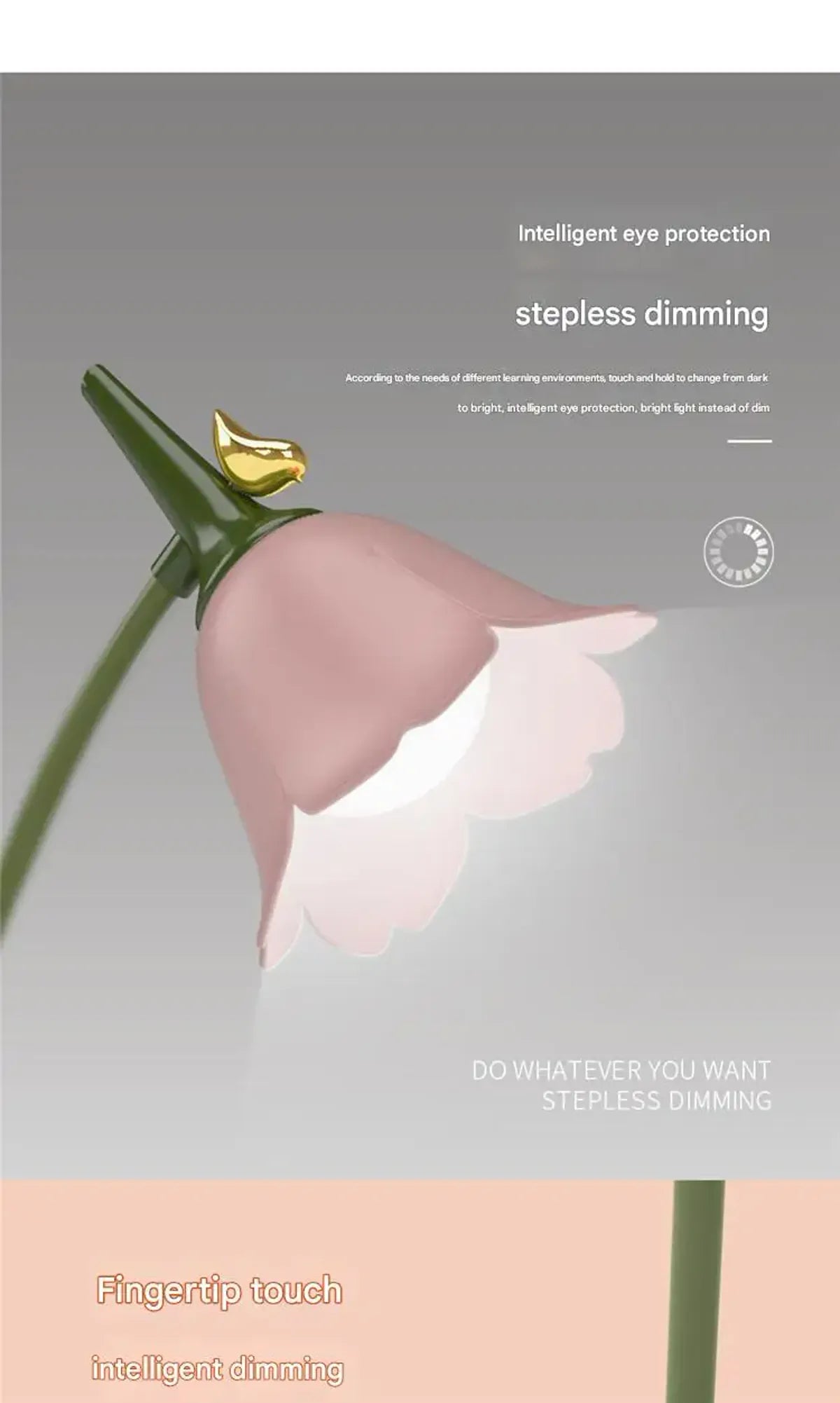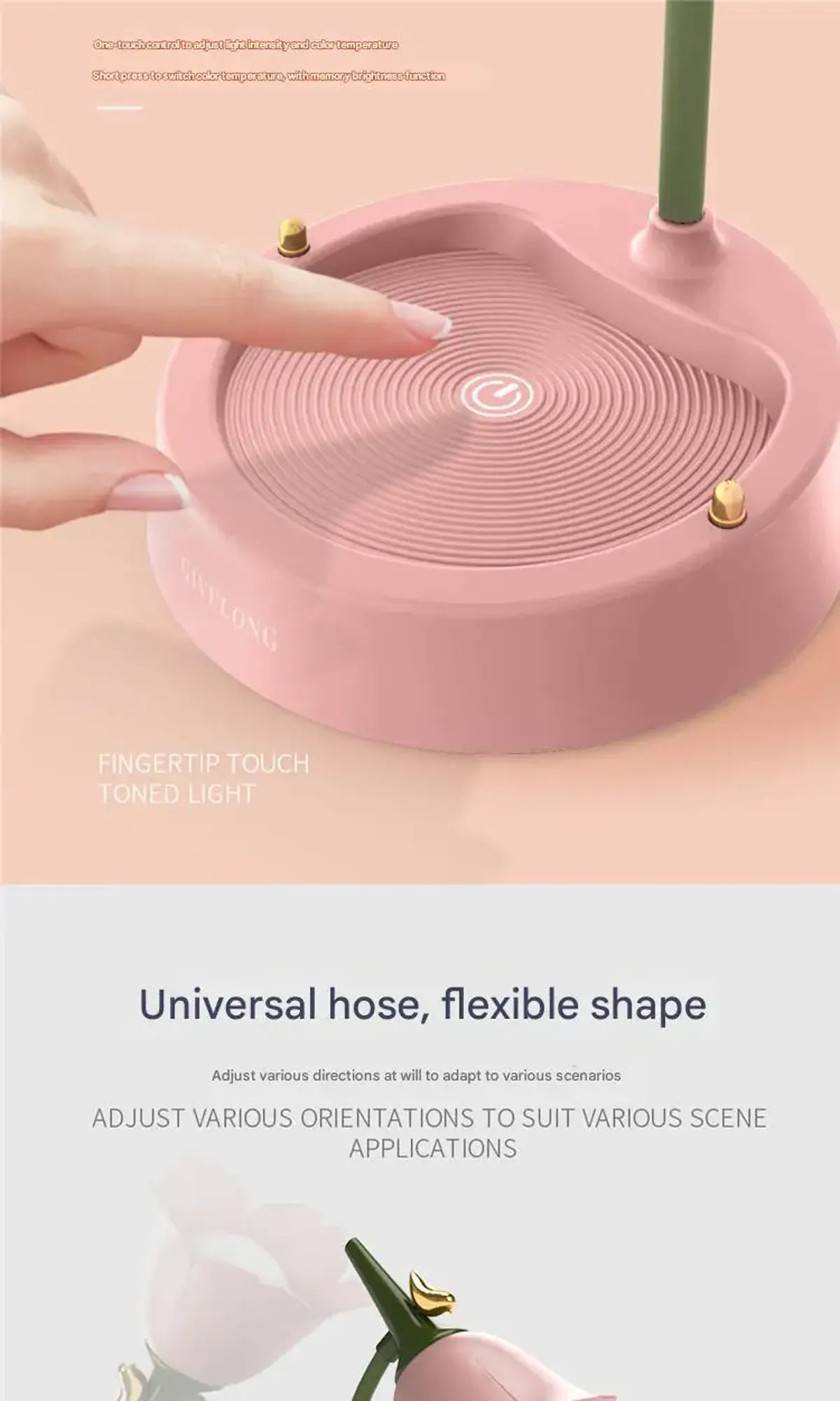 Fingertip touch switch enables easy on/off and brightness adjustment for smooth, intuitive operation.