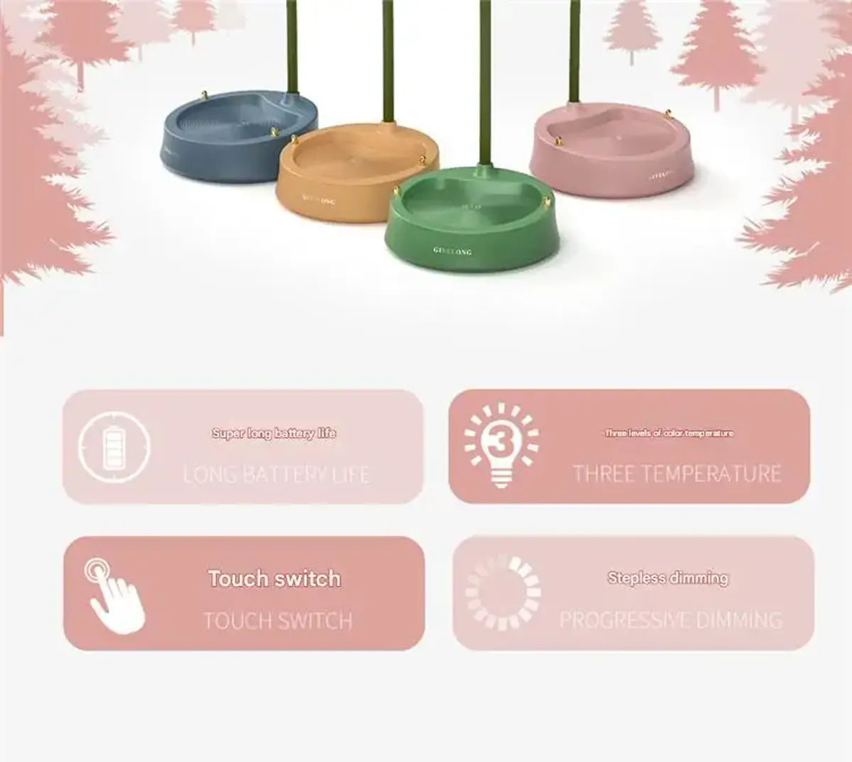 Features 3 lighting modes (White / Neutral White / Warm White) with stepless dimming for comfortable reading, studying, or relaxing.
