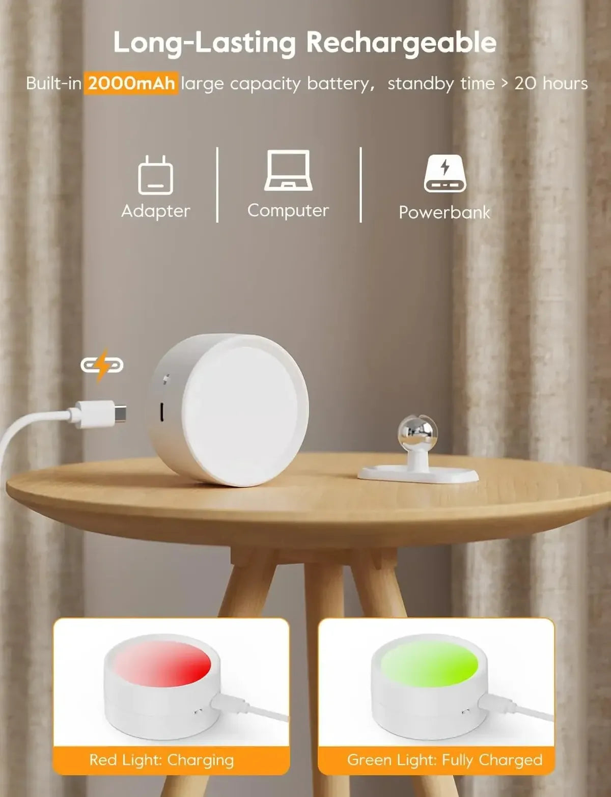 Built with a 2000mAh Type-C rechargeable battery that fully charges in 2–3 hours and lasts up to 24 hours on low brightness or 4 hours on high brightness—no disposable batteries required.