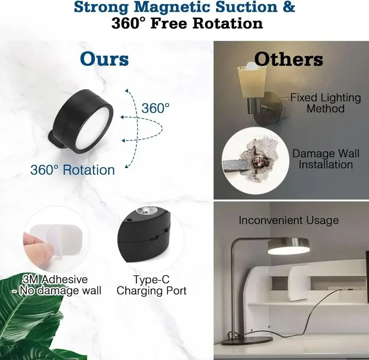 The strong magnetic base and 3M adhesive allow instant installation—no drilling, no wiring. Easily remove the lamp anytime for charging or portable use.