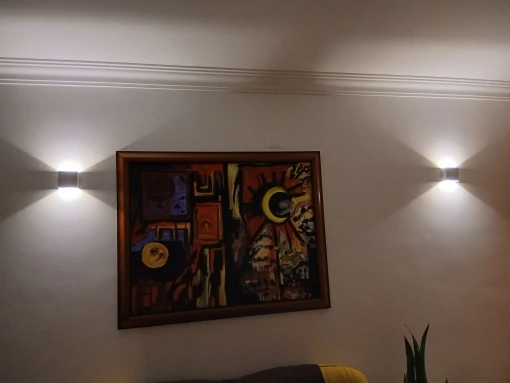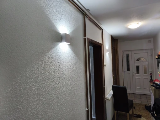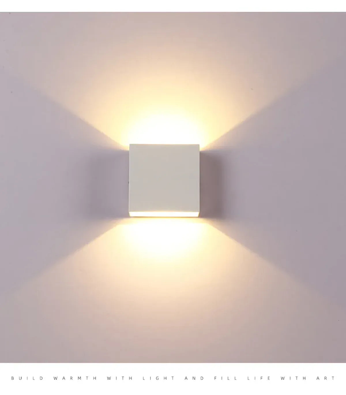 Modern 6W LED wall lamp with up and down lighting. Crafted from aluminum, perfect for living rooms or bedrooms. Provides soft, elegant light for modern or classic interiors.