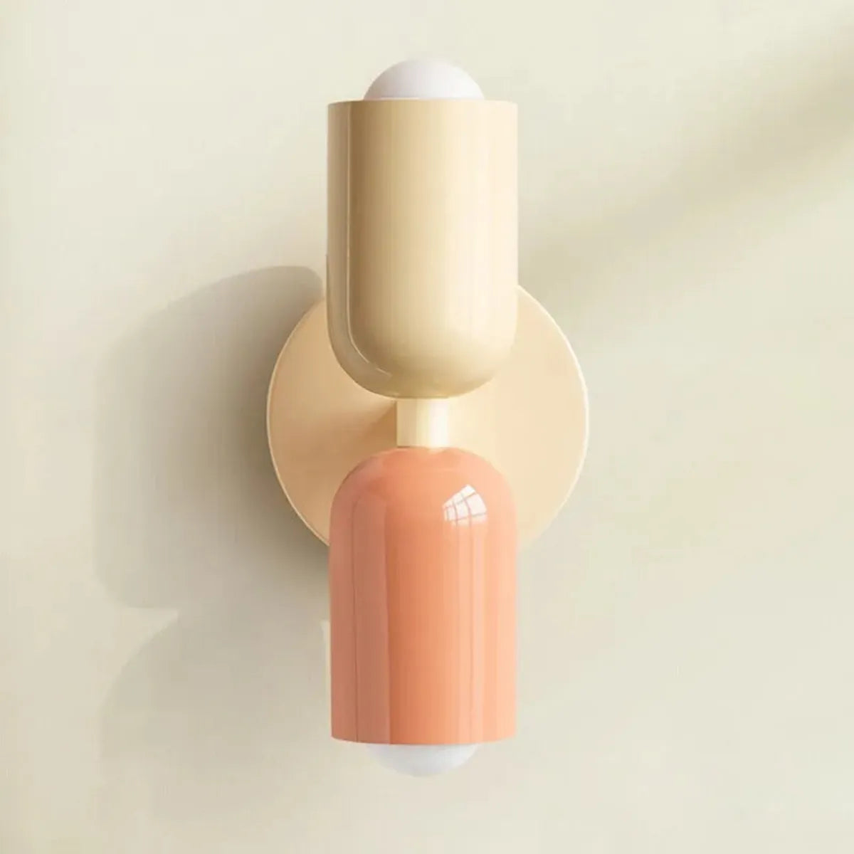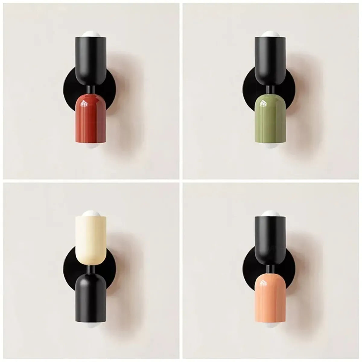 Nordic minimalist LED wall lamp with cream double-head design and up/down lighting. Iron construction in beige, black, green, pink, or red; E27 base for soft, strobe-free bedside illumination in 3-5 square.