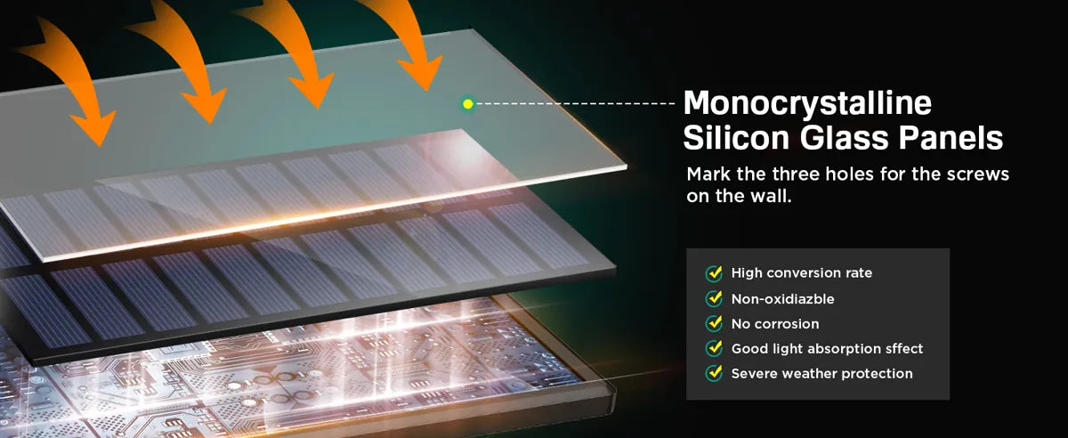 Solar Panel: Extra-Large Tempered Glass, 35% conversion rate