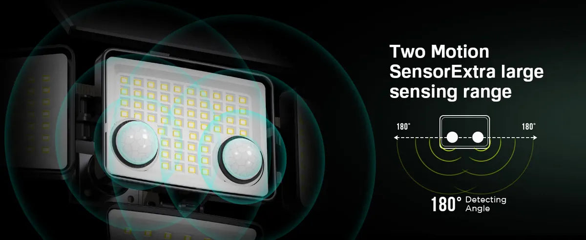 【Upgraded More Sensitive and Powerful Dual PIR Motion Detector】Our solar outdoor lights features 2 powerful PIR motion sensors, enhancing motion detection, capable of detecting motion up to 40 feet away within a 180-degree range.The solar outdoor light covers a broader area, providing longer illumination time for your peace of mind and security.
