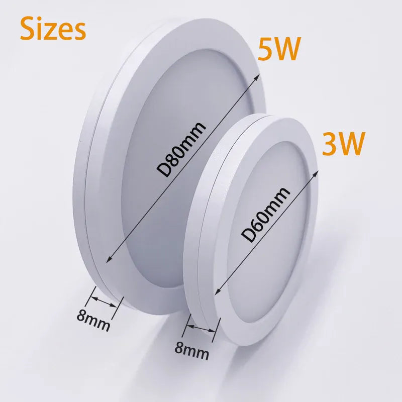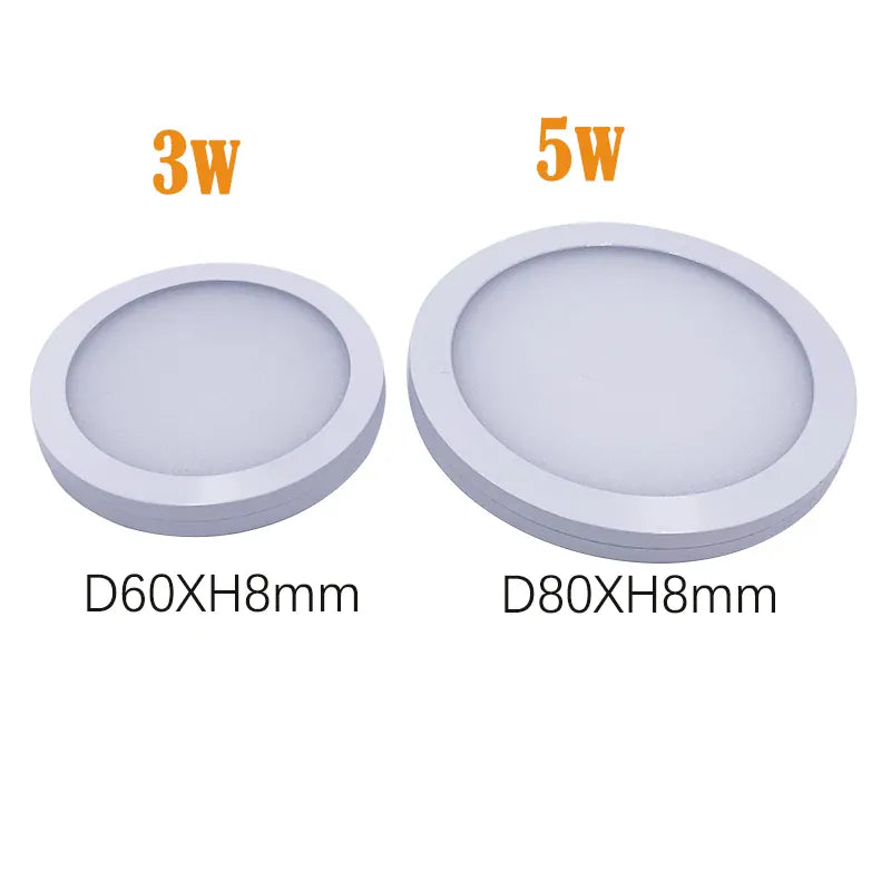 Size: 3W D60×H8mm,5W D80XH8mm Surfaced Mounted
